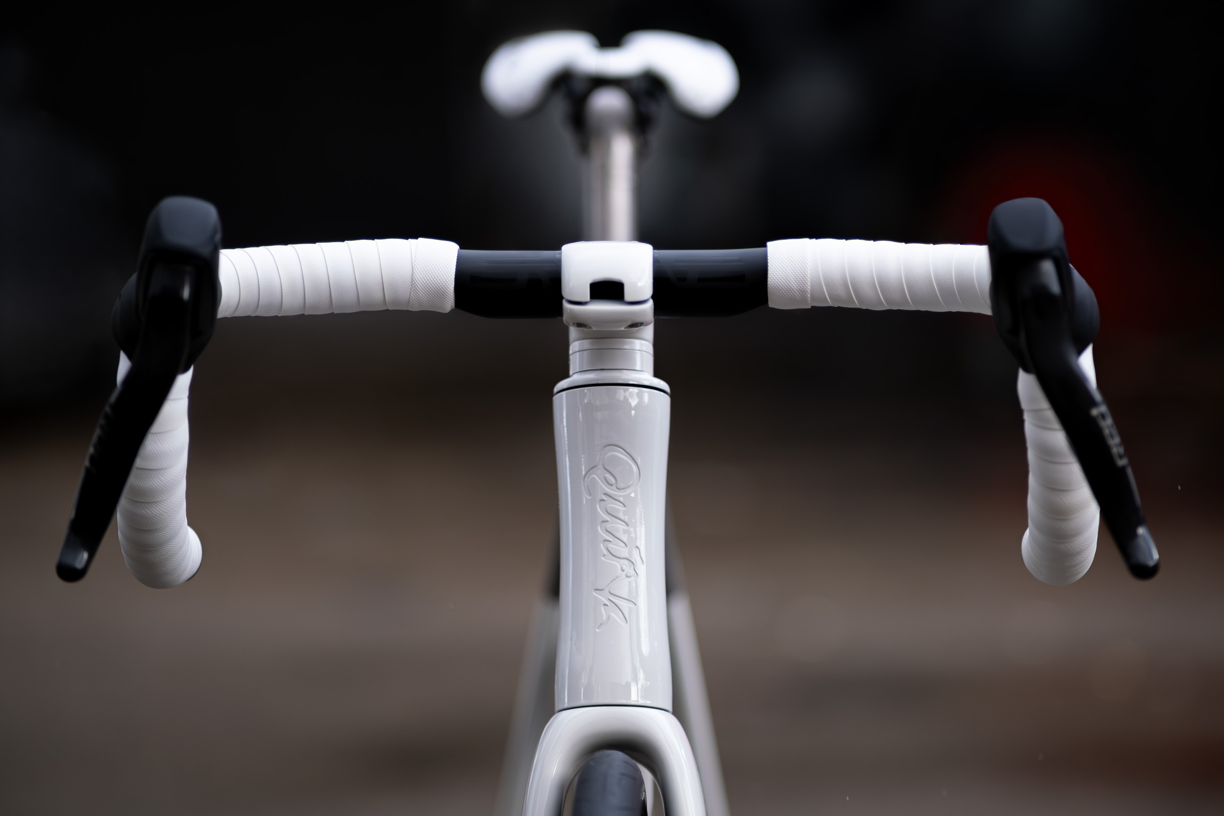 An Enve In-Route carbon fork, bar and aero stem are hand-painted in white with signature Manchester to London detailing. Brushed titanium paired with clean white accents gives the bike a timeless, purposeful aesthetic worthy of a collector’s piece.